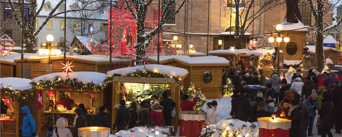 2. After lunch, we will continue our journey to one of the most important landmarks in North American history, Old Quebec City. This is the origin of Canadian culture and it is the only city in North America that kept the historical properties maintained. You can see the French-style buildings within the city, creating a romantic vibe perfect for couples. Then we go to the Germany Christmas Market in the city hall of Quebec City to immerse up the atmosphere of the holidays and celebrate traditional Christmas on the spot.